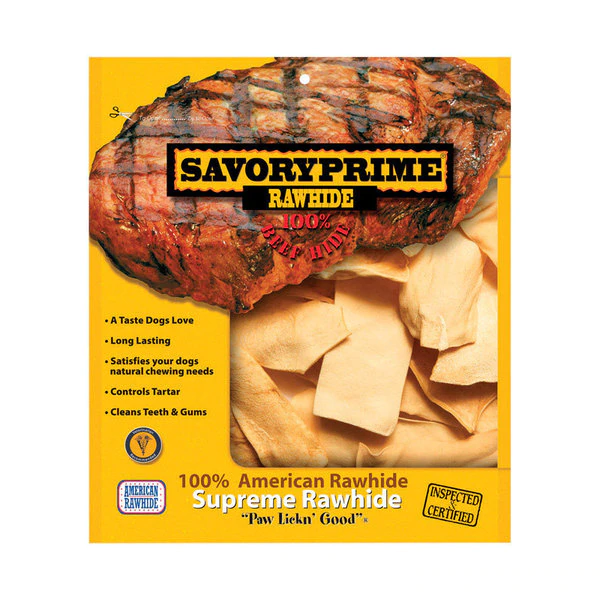 Rawhide Chips Chicken 2 inch by 6 inch 1 pound. bag of Savory Prime Rawhide products are made with the finest quality ingredients. Our extensive line of rawhide treats will make your program a complete success.