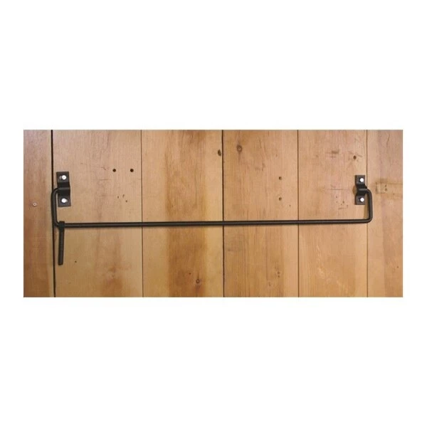 Made for superior strength and dependability, this hinged bar stays out of the way when not in use. Powder coated heavy duty black 1/2" rod and brackets. Measures 36" long and weighs 3 lbs.Amish made in the USA.Mounting screws not included. Available in black only.