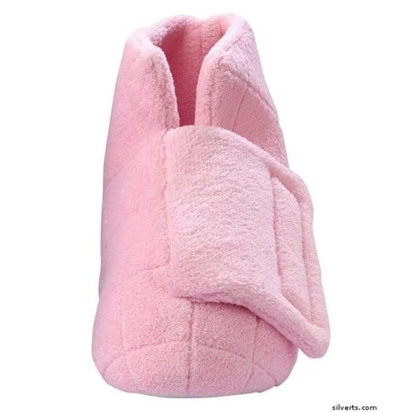 New! Super-Soft. Plush Slippers keep feet warm and cozy. Extremely wide fit accommodates any level of swelling. Slip-resistant soles for safer transfers. Easy Touch closure. FeaturesExtra Wide Swollen Feet Slippers with Soft Cozy ComfortableAssured comfort and convenienceSpecificationsColor: Baby PinkSize: Extra LargeWeight: 1 lbs