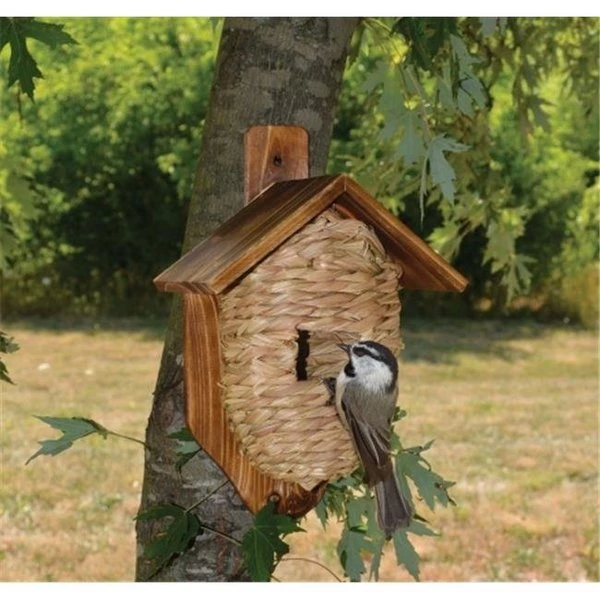 Natural materials help keep birds safe from predators as they blend in with surrounding areas and do not attract unwanted attention. Birds desire a house made of rough material because rough surfaces make entering and exiting easier. Reed grass and cedar roof are resistant to premature decay. Roosting pockets are especially beneficial to non-migrating songbirds during the winter months. They provide much needed refuge from harsh storms. wind. freezing rain. heavy snow and the bitter cold. Reed Grass Construction. Natural ventilation and drainage. blends into surroundings. Loved by a wide variety of songbirds.Dimensions: 10.4"D x 6"W x 4.3"L