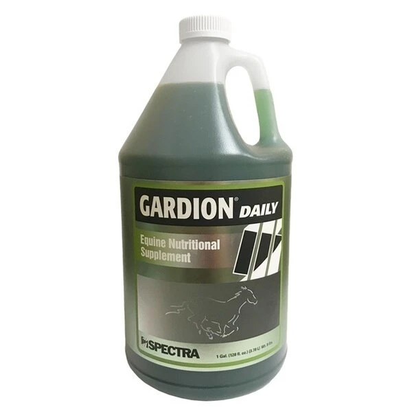 For horses with stomach ulcers, Gardion is a liquid solution of nutrients and herbs with the ability to promote healing of ulcers and a healthy appetite. Approximately 80% of horses have stomach lesions due to food consumption and the stress of heavy training.Features and Benefits • Contains premium ingredients for better results.• Formulated to promote rapid healing of stomach and intestine lining. • Designed to regulate the proper acid/alkaline balance. • Helps optimize food absorption and promote appetite. • Contains amino acids shown to help heal the stomach lining.• Guaranteed back on full feed in 7 days.