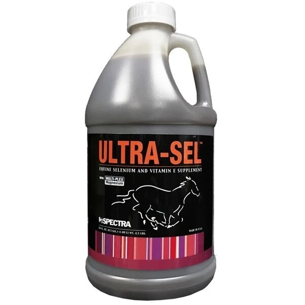 Ultra-Sel combines optimal selenium absorption and high bioavailability vitamin E with MULTI-PLEX magnesium, a proprietary brand of magnesium to support muscle metabolism. The unique magnesium blend provides quick absorption in the stomach as well as sustained absorption beyond the stomach. The blend includes a high absorption of chelated organic magnesium which provides protection against potassium interference. Potassium in the diet can render many magnesium products useless, or deplete their effectiveness.Indications:For horses in low selenium areas or those requiring a performance level of selenium in the blood. Also for use on horses experiencing muscle soreness problems and those prone to tying-up syndrome.Directions:Maintenance – mix 1 oz. (30ml) daily per 500 lbs. (Approx. 225 kg) animal weight into feed.Intense Work – mix 1 oz. (30ml) twice daily per 500 lbs. (Approx. 225 kg) animal weight into feed.Expect Results:Within 14 days.