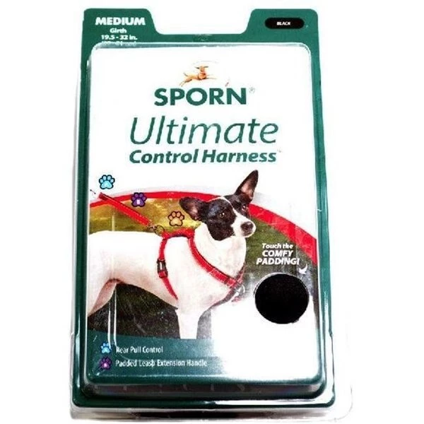 The Sporn Ultimate Control Dog Harness is the latest addition to our line of control products. offering 4 methods of pull control in one harness! It's patented. comfort design gives the dog owner several ways to humanely control their dog when on the go. The harness is easy to put on and is start working instantly. using the "Sporn Effect". without intensive training! FeaturesFront and Rear Pull ControlBuilt-In Easy Grab Emergency HandleIncludes Detachable Accessory Handle/Leash ExtensionPadded Throughout for ComfortSpecificationsColor: BlackSize: MediumPet Type: DogDimension: 2.25" H x 5.25" W x 8.25" LWeight: 0.6 lbs
