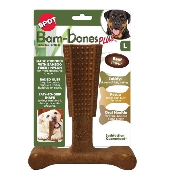 Spot Bam-bones Plus Brown Beef Bone Bamboo Fibers Pet Toy Large 1 pk