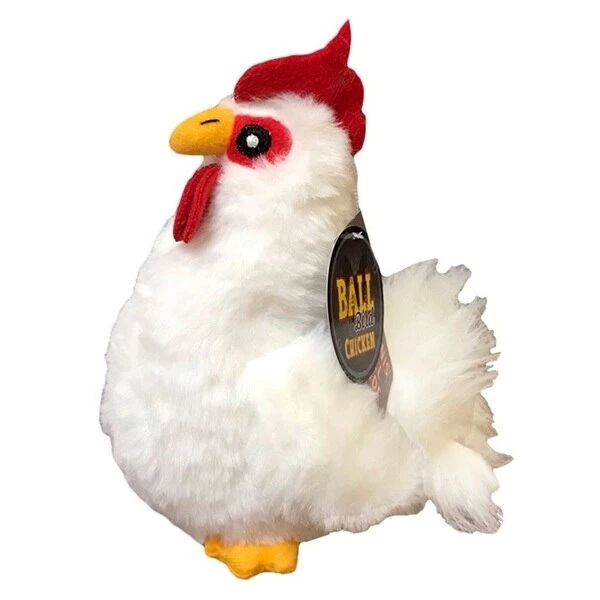 Steel Dog Chicken with Tennis Ball is made with a soft plush physique, feathered tail, and tennis ball body. Each plush includes a Chew-O-Meter rating, ranging from gentle to tough, so you know just how well it will stand up to your dog. Even if they do succeed in tearing through, there is a tennis ball toy waiting inside—two toys in one! Measures 6.5" x 4.5" x 3.5".