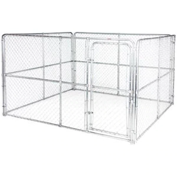 FeaturesDog kennel systemRust resistantGalvanized steel tubing & chain link fabric are used to construct the preferred bent modular fence seriesTakes only 15 minutes for a 4 panel unit & requires only one 1/2 in. WrenchThere are no holes to dig. no concrete to mix & no wire to stretchSet up requires only 2 clamps at each cornerClamps are includedSize – 10 x 10 x 6 ft.Dimension – 120 x 8 x 72 in.Item weight – 217.75 lbs.