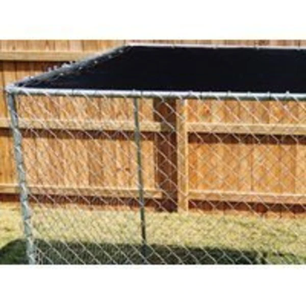 Woven UV-treated polypropylene top with reinforced grommets every 12 in. Cable ties and instructions included. Sunblock cover only, kennel not included.