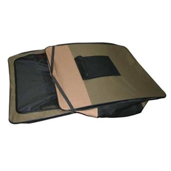 The Sportsman Series Portable Pet Kennel offers a lightweight and convenient way to keep your pets safe and secure while traveling camping or at home. The pop up design sets up in the blink of an eye then easily collapses and folds into a carrying case for convenient storage. The soft-sided design is strong durable weather resistant and comfortable for man’s best friend. The mesh windows and zipper door offers lots of space for ventilation. Hook and loop fasteners help keep kennel stationary on carpeted surfaces. Features: Pop-up design is perfect for traveling camping and home For medium size dogs weighing 40 to 70 lbs. Overall size: 37 in. L x 24.5 in. W x 27.5 in. H Water resistant 600D construction with wire frame Easily collapses into a soft-sided carrying case for convenient storage