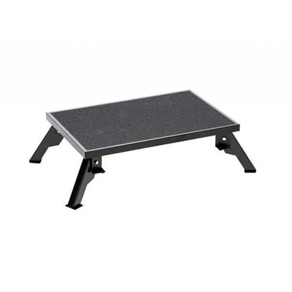 The non-skid tape keeps your foot planted where you put it. This steel step can be used at 4 Inch with the legs folded. or at 8 Inch with the legs open. Made with Hi-grade steel and a powder coat finish to resist rust.Features Weight: 5 lbs. Type: One Step Length (IN): 24 Inch Width (IN): 16 Inch Height (IN): 4 Inch To 8 Inch Capacity (LB): Up To 300 Pounds Color: Black Material: Steel