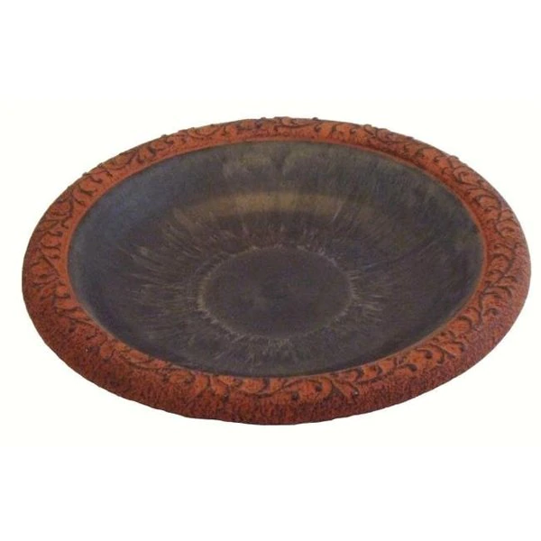 This Fiber Clay Birdbath bowl is unlike anything you've ever seen! Because it is constructed of clay with plastic and fiber mixed in. you will be pleasantly surprised to find this bowl is actually light weight and durable. Add elegance and function to any garden with ease. Shatter-resistant and even fares well even in extreme temperatures. Smooth semi-gloss finish on bowl provides UV protection as well as easy clean-up and reduce staining. Rim is matte finish with etched detail for a unique and classy look. The perfect gift for the bird lover on your list!FeaturesBlack Gloss Bird Bowl with Mat RimSpecificationsCountry of Origin: ChinaDimensions: 3.5" D x 220" LWeight (lbs) : 6