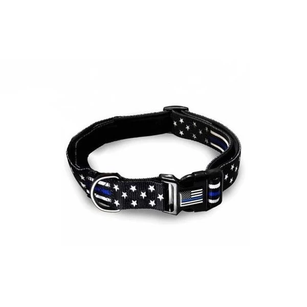 This dog collar is perfect for Law Enforcement Supporters and dog lovers. This Thin Blue Line collar is great for walking and training pets. Woven from high-strength nylon material. the dog collar is durable and lightweight. which allows you and your pet more comfortand freedom. Let your best friend show their support for the men. women. and dogs that walk the thin blue line. SpecificationsDesign: Stars & Stripes