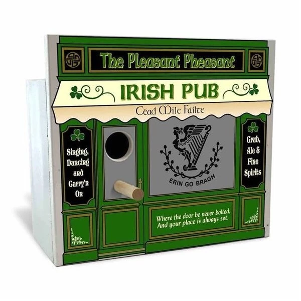 FeaturesThis is no ordinary birdhouse. it's a park avenue. the finest in luxury aviary livingCelebrate the season with the hottest birdhouses on the marketPark avenue aviary condominiums are made of outdoor mdf and sure to attract a fleet of fine feathered friends to frolic in your gardenSpecificationsDesign: Irish PubHole Size: 1.375 in.Dimension: 11 x 9.5 x 5 in.