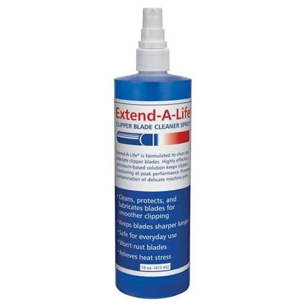 Now there's a quick and easy solution to extending the life of your blades! Simply spray Top Performance Extend-A-Life Blade Rinse 16 oz Spray directly onto cool blades and let Extend-A-Life do its job. Cleans. lubricates. and conditions the metal Blades stay sharper longer No need to remove blades from clipperAvailable in 16 oz. spay. Safe for everyday use.See the Safety and Instructions tabs for more product details.