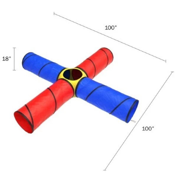 A place for your child to explore and play is a dream come true with this Kids Play Tunnel by Toy TimeThis charming playhouse easily folds for convenient storage and portability, so your child can create an exhilarating adventure in any room in the home or even in the backyard for outdoor play. The vibrant colors and 4 attached tubes make this a fantastic gift for endless hours of fun and laughter with your own little explorer or as a gift for a niece, nephew, grandchild, or little brother or sister!