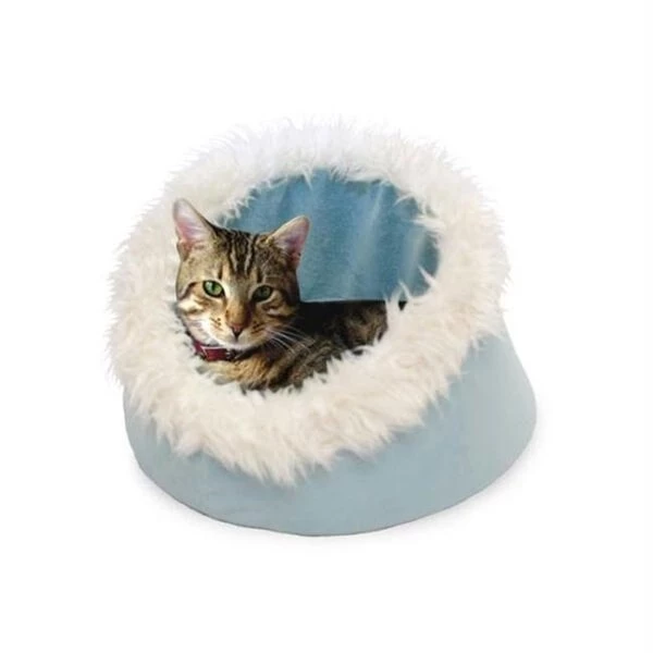 Provide your cat the lap of luxury they long for with the PAW Feline Comfort Cavern. Your cat will enjoy curling up and relaxing in the privacy afforded by this one of a kind enclosure. Or. if your cat is feeling frisky. they'll enjoy playing with the fanciful fluff trim. The removable insert pillow keeps your kitty cozy and the entire Feline Comfort Cavern is washable making clean up a breeze. The PAW Feline Comfort Cavern is the purrrrfect gift for the cat in your life.Product Features:Lush Interior for Exquisite LuxuryFanciful Fluff Trim for Playing or HidingResplendent MicroSuede ExteriorCuddle Comfort Faux Lambswool Insert PillowFoam Exterior Walls Provide SupportTufted Insert Pillow is Machine WashableWater-Resistant Polycanvas BaseCompletely WashableDimensions: 18" x 18" x 12"