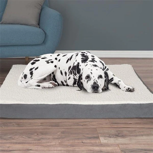 The petmaker orthopedic pet bed with machine washable non-slip bottom cover has a 2.75 inch layer of high density foam coupled with a two-inch layer of memory foam to provide maximum support and comfort for any dog or cat. FeaturesMemory foamRemoveable and machine washable coverRecommended for dogs or pets 65 – 100 poundsSpecificationsColor: GrayMaterial: 100% polyesterDimension: 44 x 35 x 4.75 in.Weight: 9 lbs