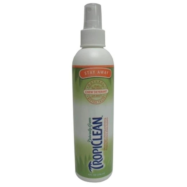 TROPICLEAN STAY AWAY CHEW DETRFormulated with some of the most bitter extracts in the world.Tastes so bad it discourages animals from ever wanting to chew. bite. lick or gnaw on something coated with it.Great for dogs. cats. birds. rabbits and deer and safe for use on indoor and outdoor plants.Protects plants. furniture and wounds from injury caused by pets chewing.Helps train pets to stay off furnitures. and protects them from poisonous plants.UPC : 645095861107Size : 8 OUNCELength : 2Width : 2Height : 8.25Product Type : Dog – Training / Training AidsShipping Dimensions: 2x2x8.25. NOT available for sale in PA