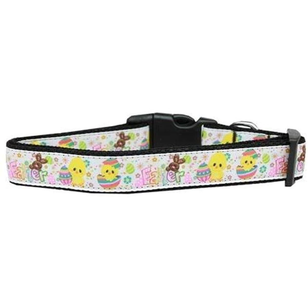 This 1" wide size large dog collar is made of durable nylon with a high quality ribbon overlay. It is adjustable to fit a neck size from 18-26".Product Summary : New Pet Products/Happy Easter Nylon Collars@Dog Collars and Leashes/Nylon Dog Collars/Happy Easter Nylon Collars@Easter and Spring Pet Supplies/Happy Easter Nylon Collars