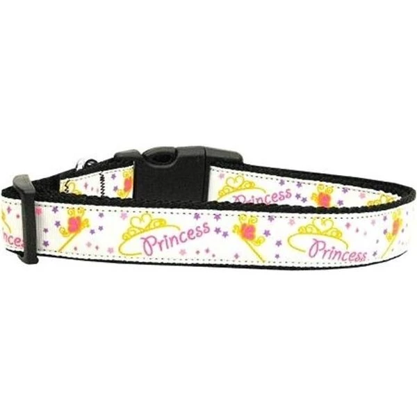 This 1" wide size medium dog collar is made of durable nylon with a high quality ribbon overlay. It is adjustable to fit a neck size from 10-18".Product Summary : New Pet Products/Princess Nylon Ribbon Dog Collar@Dog Collars and Leashes/Nylon Dog Collars/Princess Nylon Ribbon Dog Collar