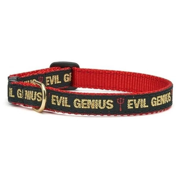 Our feline friends have lots to purr about with Up Country's stunning selection of collars. harnesses and leads. Lightweight flexible nylon webbing and our signature artist designed ribbons are fastened with a breakaway clasp that is the safest way for cats to dress. This clasp will release under pressure to assure safe outdoor play. but is durable for daily wear. Enjoy! FeaturesEvil Genius Cat CollarQuality selection for everyday pet needsAssured hygiene and care for petsSpecificationsDesign: Evil GeniusSize: Size 10Weight: 0.5 lbs