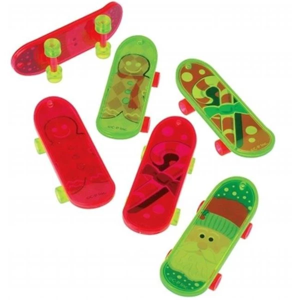 Includes (12) themed skateboards in neon pink and green. Plastic; 3"" wide.