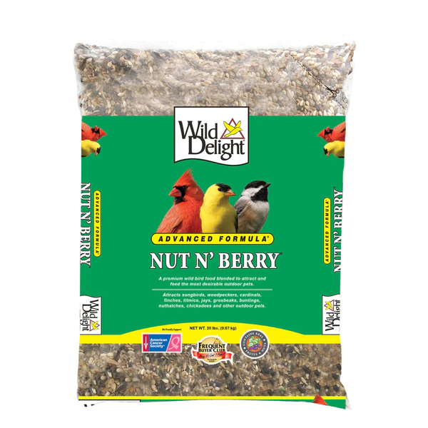 This a premium wild bird food blended to attract and feed the most desirable outdoor pets. Features real fruit real nuts added vitamins added minerals electrolytes amino acids no corn no milo no millet and no chemical preservatives. Feed desired amount in a tube feeder with large holes hopper feeder platform feeder or on the ground. This product weighs 20 lbs.