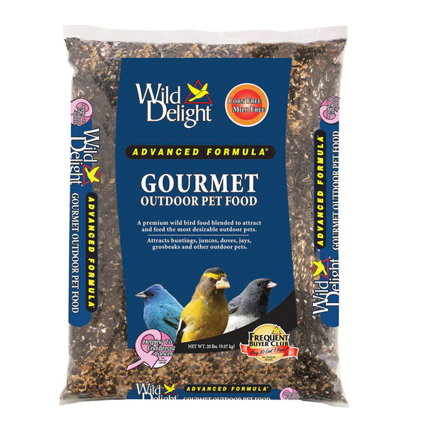 This a premium wild bird food blended to attract and feed the most desirable outdoor pets. Features added vitamins added minerals electrolytes amino acids no corn no milo and no chemical preservatives. Feed desired amount in a tube feeder with large holes hopper feeder platform feeder or on the ground. This product weighs 20 lbs.