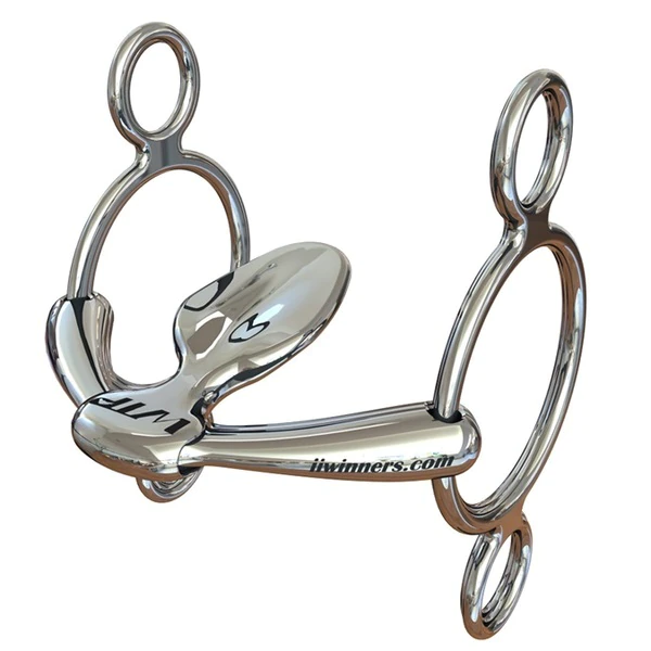 Winning Tongue Plate 3 Ring Elevator Bit with Extended Plate corrects breathing problems, and stops displacement of the soft palate. The bit arms have limited travel to prevent outer ring pressure, and pain to the cheek and lips. Used to have a soft and responsive contact with leverage.Material: Stainless Steel