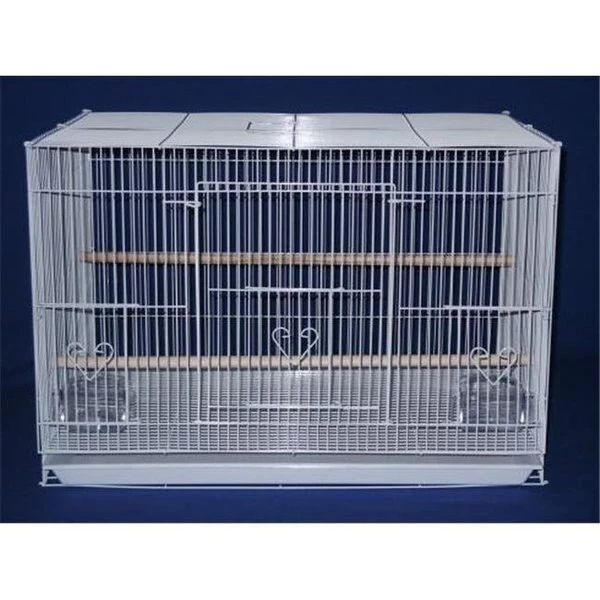 Bird breeding cages.Color: White.Powered coated finish.Large lift up front door.Two perches.Two feeder cups and 2 feeder doors.Pull out plastic tray for easy cleaning.Assembly required.Bar spacing: 1/2".Dimensions: 18" H x 30" W x 18" D.