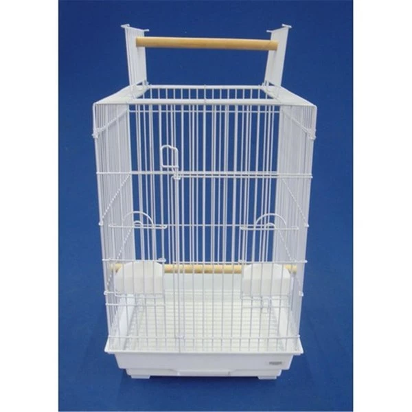 Includes 2 feeder doors. 2 plastic cups and 2 perches.Color: White.Large swing-out door.With open top.1 perch inside the cage and 1 perch on top of the cage.Easy clean removable metal grate.Easy clean slide out bottom plastic tray.Non toxic epoxy.Assembly required.Bar spacing: 0.75".Gauge: 7.Dimensions: 27" H x 18" W x 18" D.Open top: 32.5" H (cage only).