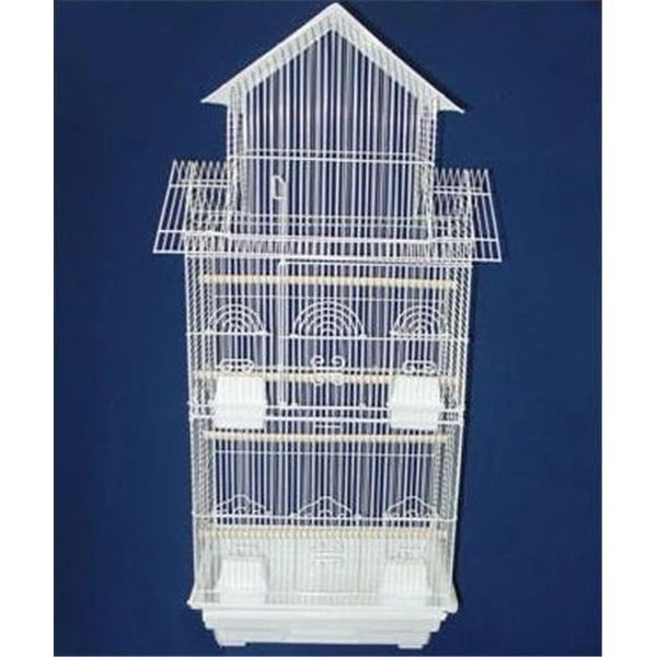 Bird cage.Color: White.Large swing out door with door pin and two small lift up doors.4 Feeder doors and 4 cups.4 Perches.Easy clean removable metal grate.Easy clean slide out bottom plastic tray.Non-toxic epoxy.Bar spacing: 0.38".Overall dimensions: 42" H x 18" W x 14" D.
