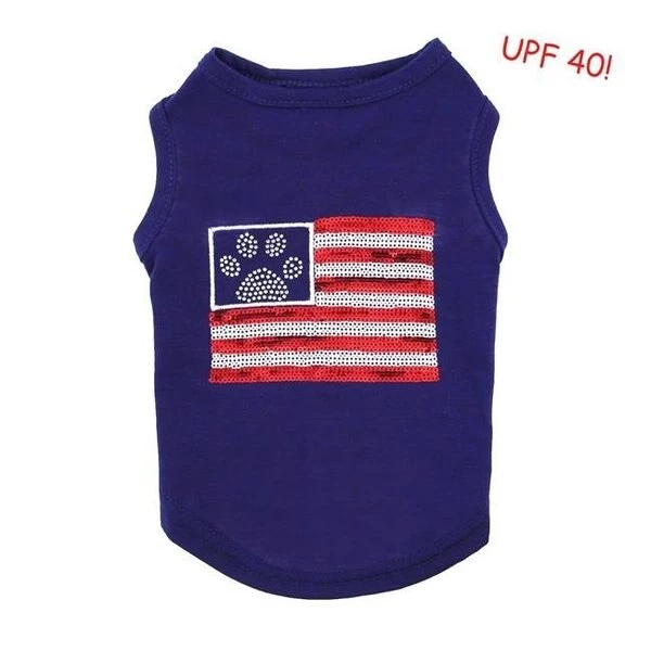 All pet accessories are well-known for its trend-setting style. innovative. creative design. impeccable quality and remarkable fit. All pets will love our innovative and unique products that have made it so popular worldwide. They have high quality material and trend setting style that differentiates form others. This will provide a best fit and make all pets even more comfortable for use.FeaturesAmerican flag with stripes of red and white sequins. and a paw print of shimmering rhinestonesProvides sun protection with upf 40 treatmentHigh-cut. stay-dry bellySpecificationsSize: Medium
